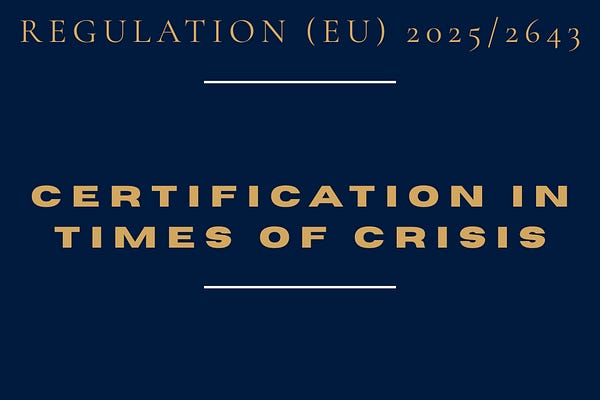 ow Regulation (EU) 2025/2643 operationalises cross-border certification during security-related supply crises