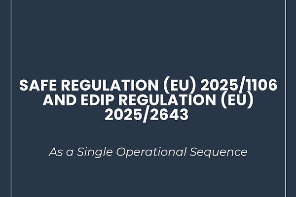 SAFE Regulation (EU) 2025/1106 and EDIP Regulation (EU) 2025/2643 as a Single Operational Sequence
