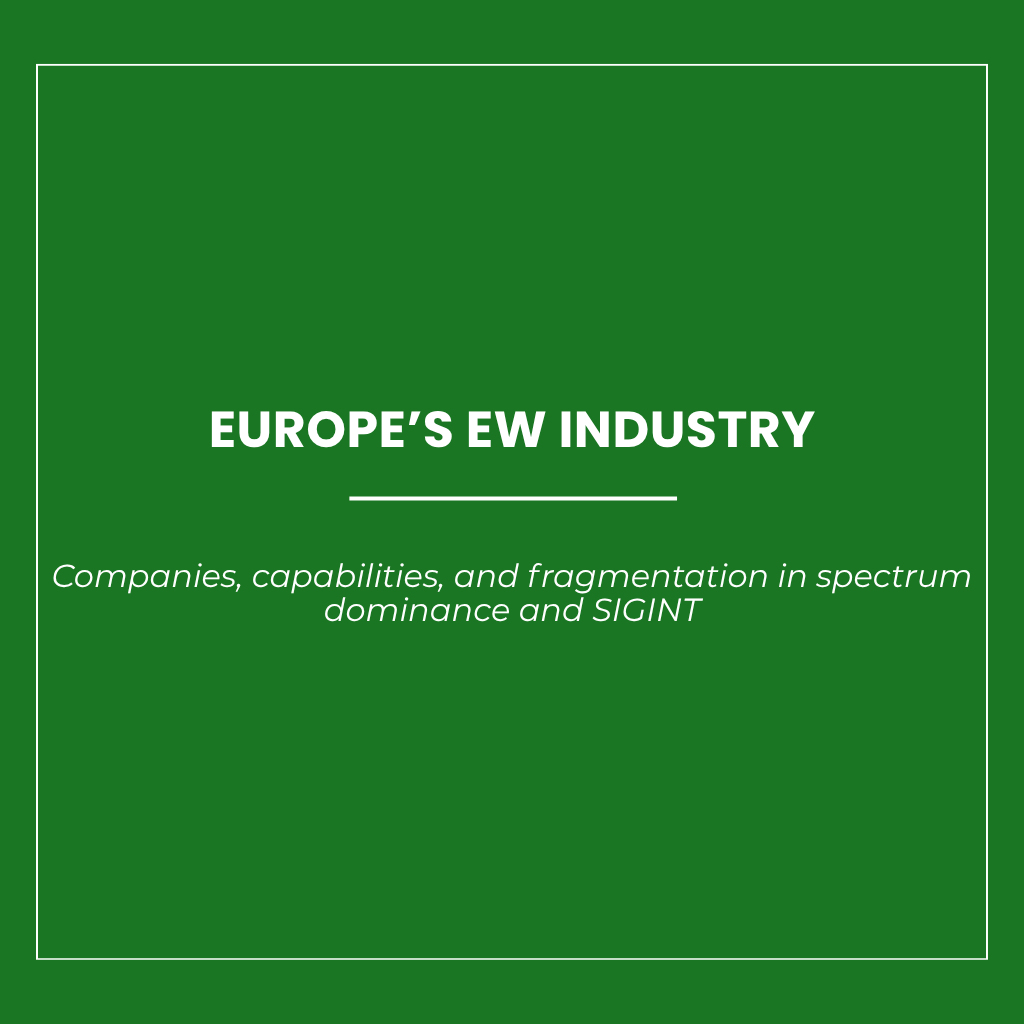 Electronic warfare, spectrum dominance, and signals intelligence have become central to European defence planning not as abstract doctrinal categories, but as practical capability requirements tied to survivability, situational awareness, contested-spectrum operations, and operational freedom across air, land, sea, space, and cyber domains. The relevant analytical problem is therefore industrial before it is rhetorical: which companies actually produce the systems, subsystems, integration capacity, and interoperability architectures on which European capability depends. The key issue is not whether electronic warfare matters, which is already institutionally established, but how Europe’s real industrial base is organized, where it is strong, where it is fragmented, and which firms are structurally most relevant by function rather than by sheer size or notoriety.