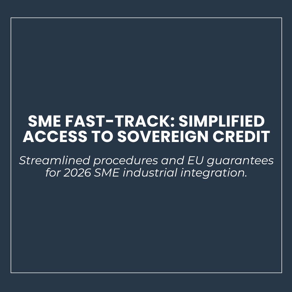 Implementation of abbreviated notification procedures and European Union guarantees dedicated to small and medium-sized enterprises to accelerate integration into the 2026 sovereign industrial base.