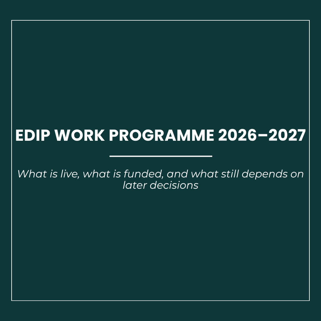 The EDIP Work Programme 2026–2027: Where the Money Becomes Operational and Where the Architecture Still Waits