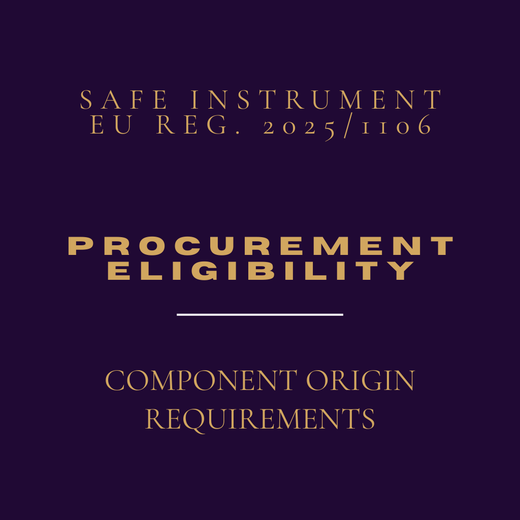 Council Regulation (EU) 2025/1106 (SAFE) imposes a formal ceiling on the share of non-European components in defence procurement contracts funded by the Union. Article 16(10) requires that components originating outside the EU, EEA EFTA states, and Ukraine account for no more than 35% of the estimated cost of the end product’s components. This clause defines a mandatory eligibility condition—not a general origin rule—for accessing SAFE loans in support of joint military procurement. The rule operates within a defined geographic perimeter and serves as an instrument to reinforce European supply chains while limiting strategic dependencies. It is applied contractually and monitored through procurement plans reviewed by the European Commission. The clause also aligns with broader EU initiatives such as EDIP and the European Defence Fund, forming part of a coherent industrial policy framework aimed at strengthening the EDTIB and mitigating exposure to third-country supply and regulatory risk.