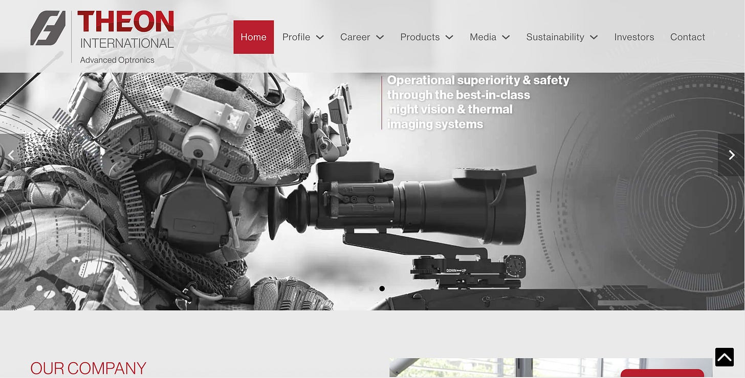 THEON INTERNATIONAL PLC (Theon) is a European leader in electro-optic soldier systems – night-vision and thermal-imaging devices. Founded in 1997 in Greece, it has grown into a mid-cap, publicly listed company (Euronext Amsterdam: THEON) headquartered in Cyprus, with a widespread footprint in Europe and beyond[1][2]. Theon’s core competence is “man-port…