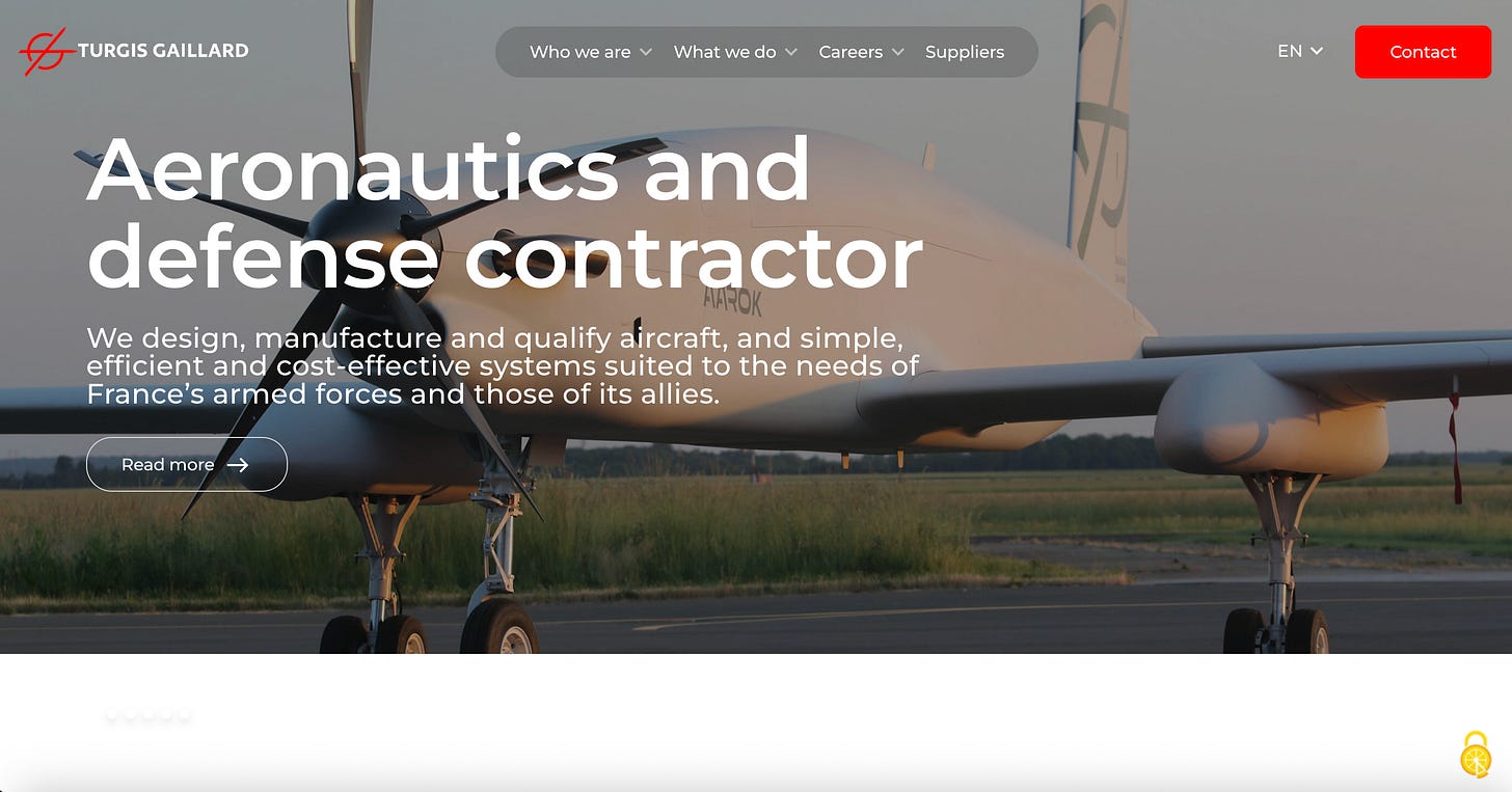 Founded in 2011 by former French military officers, Turgis Gaillard has evolved into a vertically integrated defense group specializing in aerospace and vehicle support. Its flagship product, the AAROK MALE (Medium Altitude Long Endurance) drone, is marketed as “100% French” ISR/strike platform[1][2]. (See image below.) This 5.5‑ton UAV, with a 22m wing…