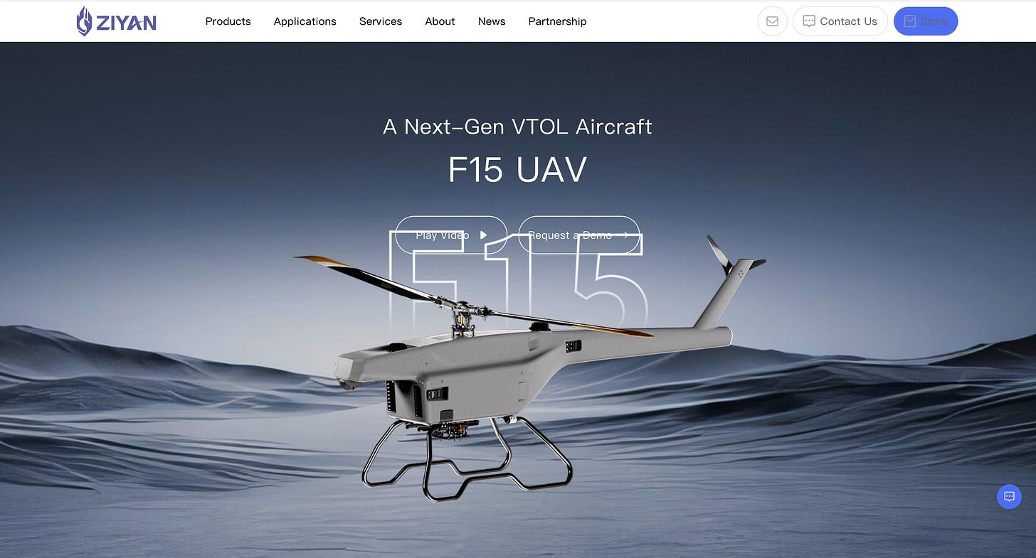 Founded in 2015 in Zhuhai, China, Ziyan UAS (Zhuhai Ziyan Unmanned Aircraft Co.) specializes in electric unmanned helicopter systems for both defense and civilian markets[1][2]. Its product line includes long-endurance VTOL drones like the F15 series and the Blowfish heavy-lift UAV, designed to carry mission payloads (up to ~15 kg) for tasks ranging fro…